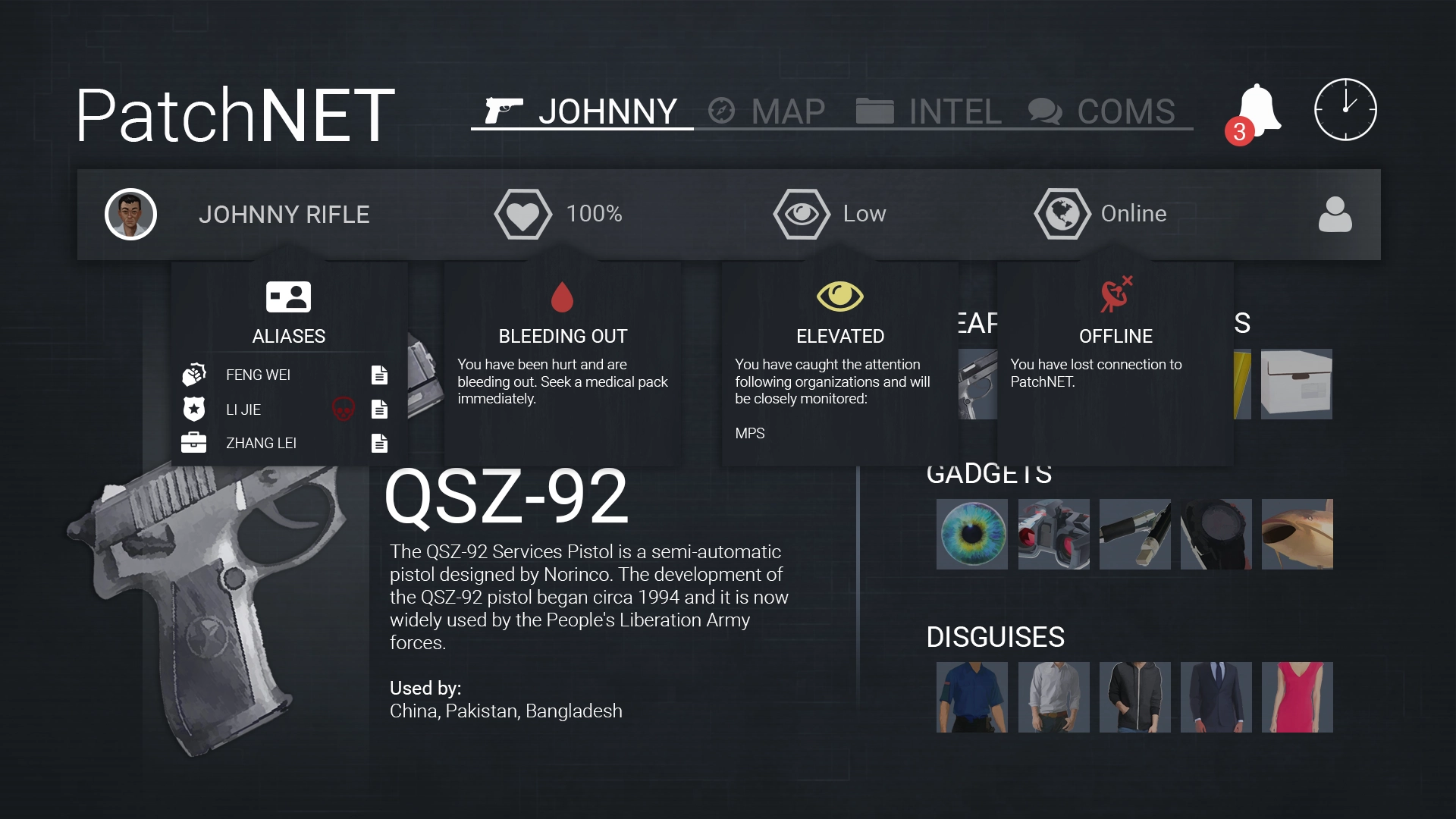 (The main menu was themed to look like the darkened living room of a CIA safe house.)hud and loading screen
