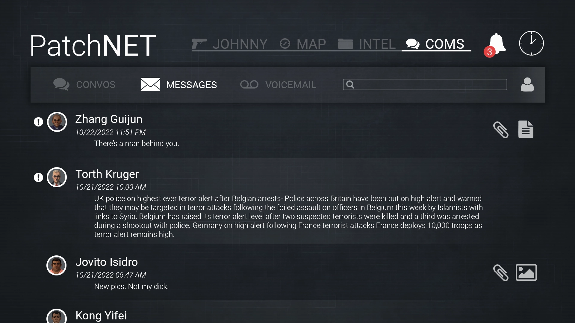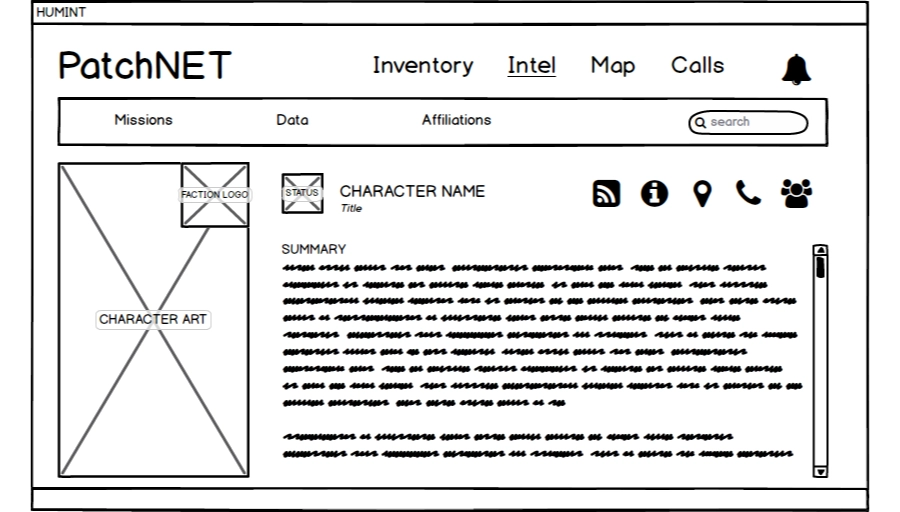 HUMINT was a first-person adventure game slated for release on the PC in 2017; however, it was cancelled in late 2016. The text and some of the 2D artwork in the images below should be considered placeholder and not reflective of the final game. The character concept art was created by Shelley Monahan.